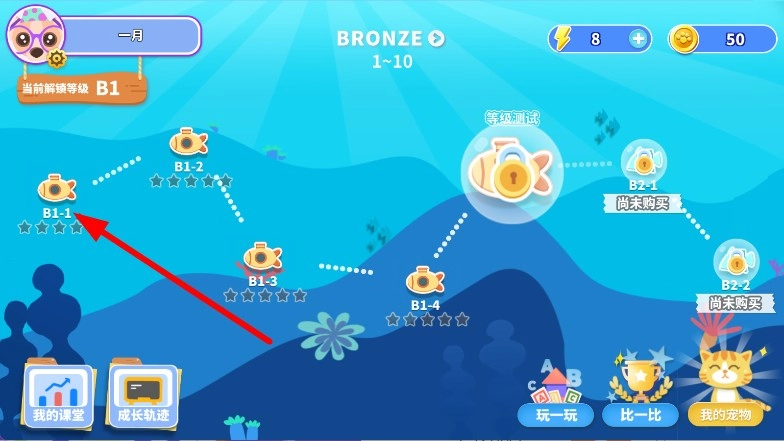 打开蜂堡未来思维应用,进入学习关卡界面后,点击对应的目标关卡。