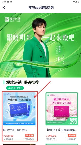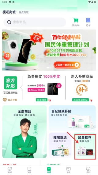 在瘦吧商城页面,找到经典推荐板块,点击进入经典推荐商品列表。