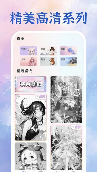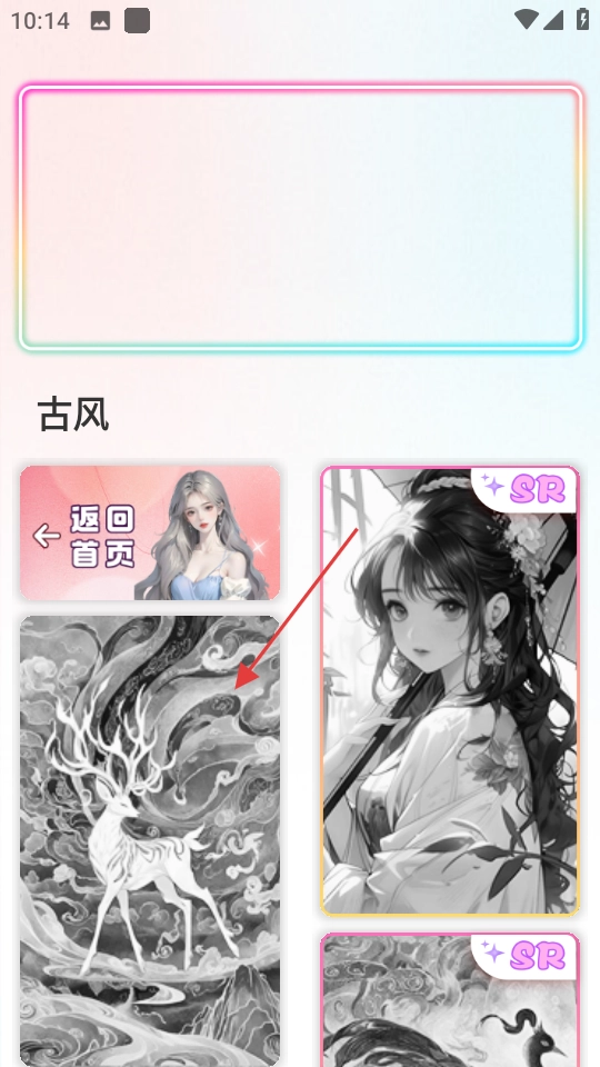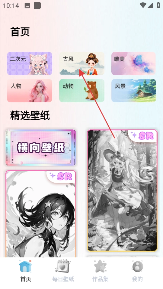 在首页,点击古风分类,进入古风壁纸展示页面。