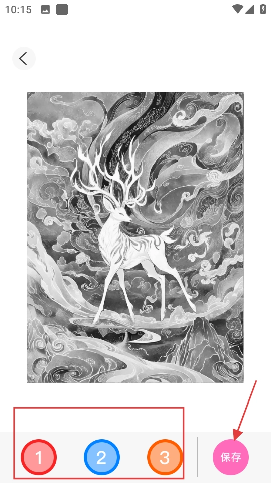 在壁纸详情页面,你可以挑选不同的颜色来进行绘画创作,完成绘制后点击保存按钮即可。