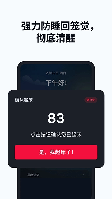 数学题、记忆游戏、摇摇手机、拍照打卡……丰富的任务形式强制唤醒,让你立刻清醒!