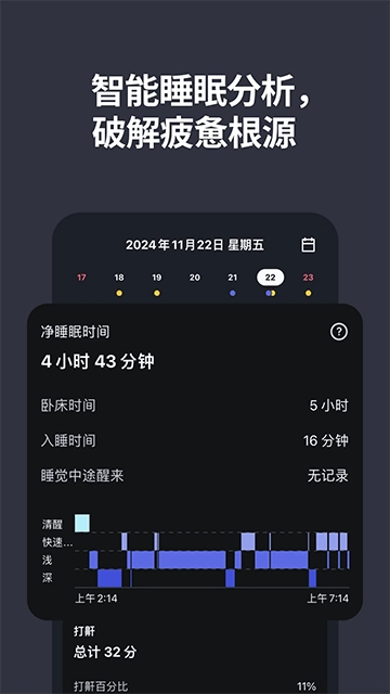 这款应用能追踪你的睡眠时间与睡眠质量,还可以记录入睡时间、起床时间以及睡眠时的状态,这些功能有助于你更深入地了解自己的睡眠习惯和身体状况。