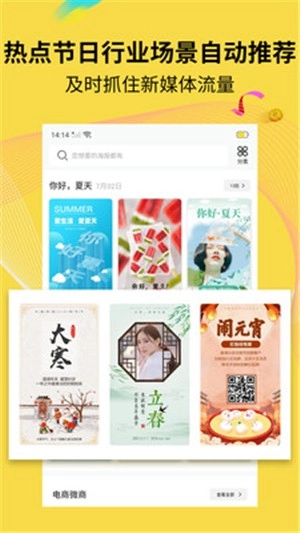 您既可以自由发挥创意设计海报,也能直接选用这款软件自带的海报模板,一键操作即可快速完成,使用起来十分便捷。软件会自动保存您创作的所有海报作品,无需担心文件丢失的问题。无论是杂志封面、推广方案、节日贺卡还是婚礼请柬等各类设计需求,都能帮您打造出独具特色的创意作品!