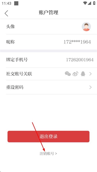 在账户管理页面,点击注销账号选项,进入申请注销账号页面。