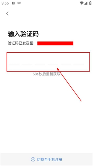 在验证码输入页面,填入获取到的验证码,以完成验证环节。