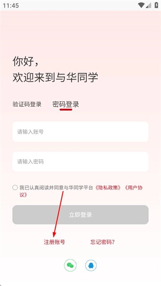 在登录页面,点击注册账号选项,进入注册页面。