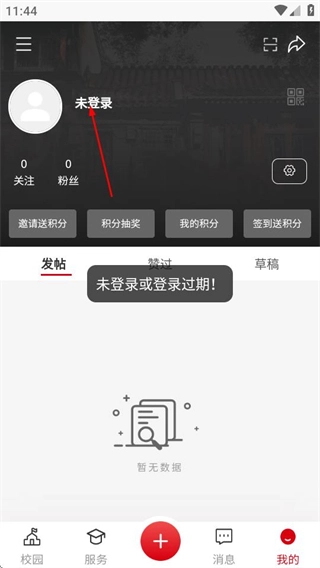 在个人中心页面,点击未登录区域,进入登录页面。