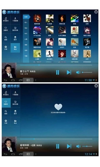 1.界面设计:酷狗音乐hd运用清新简约的界面设计风格,操作顺滑无阻,带来出色的用户体验。借助大屏显示优势,音乐播放界面的呈现更为清晰直观,方便用户轻松开展各类操作。