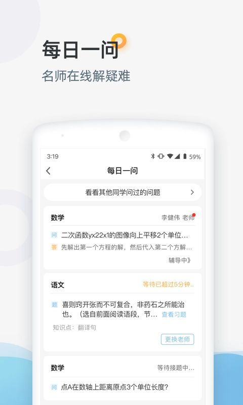 3.实时答疑:每日一问功能,学生可随时向名师提问,解决学习难题。