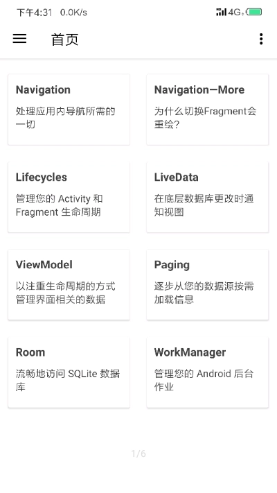 您好,欢迎体验JetpackNote!这是一个依托谷歌Jetpack组件构建的笔记类项目,涵盖了Navigation、Lifecycles、Paging、LiveData、ViewModel等核心组件的源码解析与Demo实践。项目全程采用Kotlin语言开发,所使用的依赖库均为代码编写阶段的最新版本,更多详细内容可前往Github了解。
