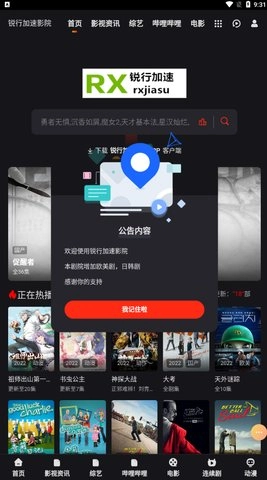 2.启动软件:安装结束后,打开锐行影院应用程序,进入其主界面。