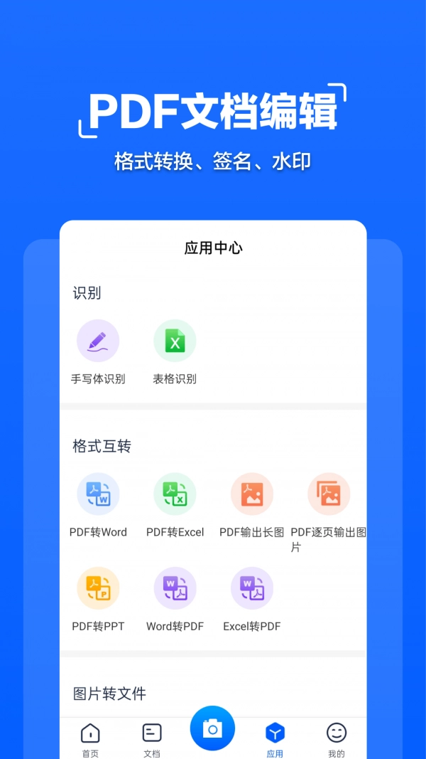 支持图片转PDF功能,借助拍照扫描方式,能把内容生成PDF文件并导出。