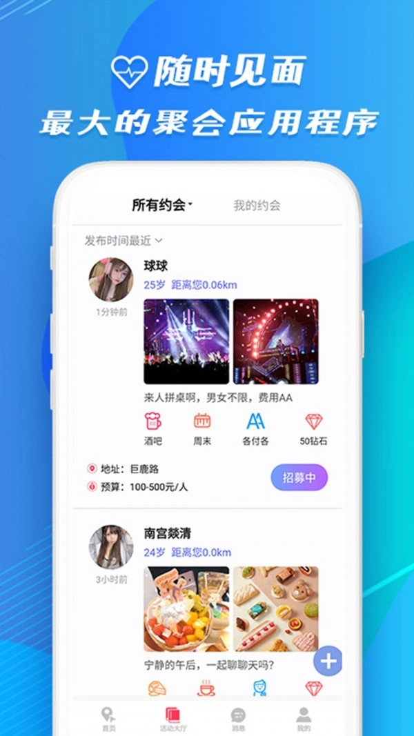 3.线下聚会:平台支持用户预约线下聚会,以此增进彼此的了解。