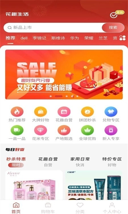 花趣生活平台汇聚了大量优质商品资源,用户可以在线挑选心仪好物。平台对所有在售商品的品质严格把关,保障用户购物无忧,大家可以放心下单。此外,平台每日推出各类优惠活动,有效减轻用户的购物经济负担。所有购买的商品均提供包邮服务,直接配送到家,让用户尽享便捷省心的购物体验。