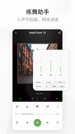 4、日常舞蹈训练:舞者可利用节拍器、调速播放及丰富曲库进行节奏训练与动作编排,增强练习的专业性和灵活性。