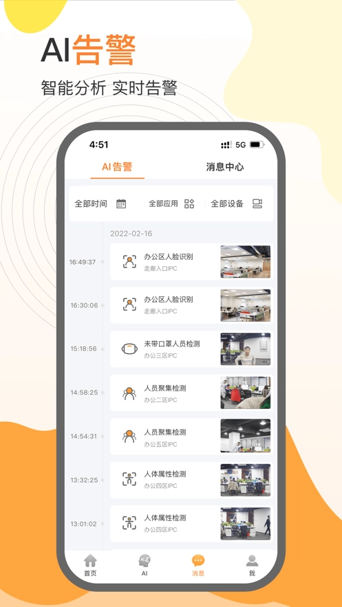 4.ai告警功能:支持查看AI应用及其关联设备,可实时接收告警信息,让用户随时随地掌握监控态势。