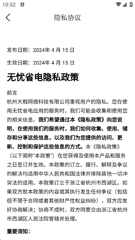 1、首次在本站安装无忧省电,需同意隐私政策后方可进入。