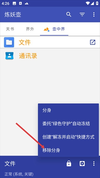 3、弹出选项菜单,选择【移除分身】。