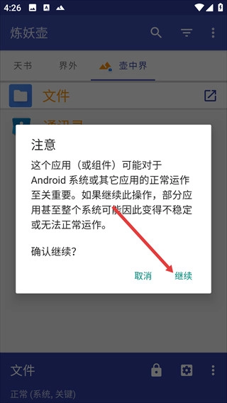 4、弹出注意弹窗,点击【继续】按钮,执行该操作。