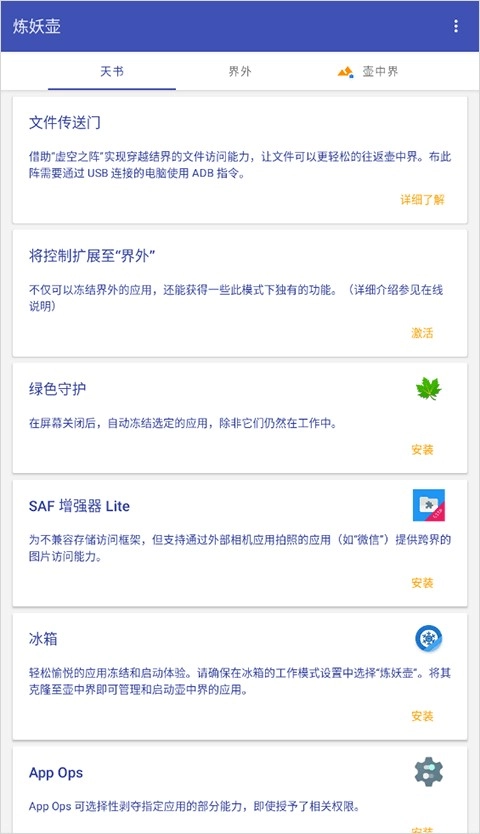 【天书】是一类与应用双开相关的实用工具集合,像绿色守护、冰箱、文件传送门都属于这类工具。