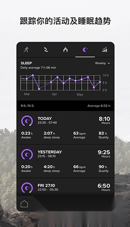1. 在应用内查看关键的训练摘要、活动概览以及睡眠分析报告。