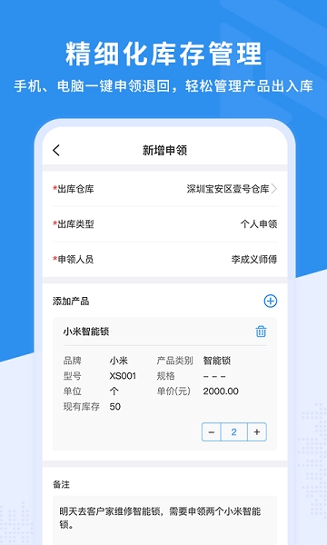 1. 备件管理:达成备件库存的软件化管理,涵盖出入库登记、员工领料与退料操作,以及网点之间的备件调拨流程。