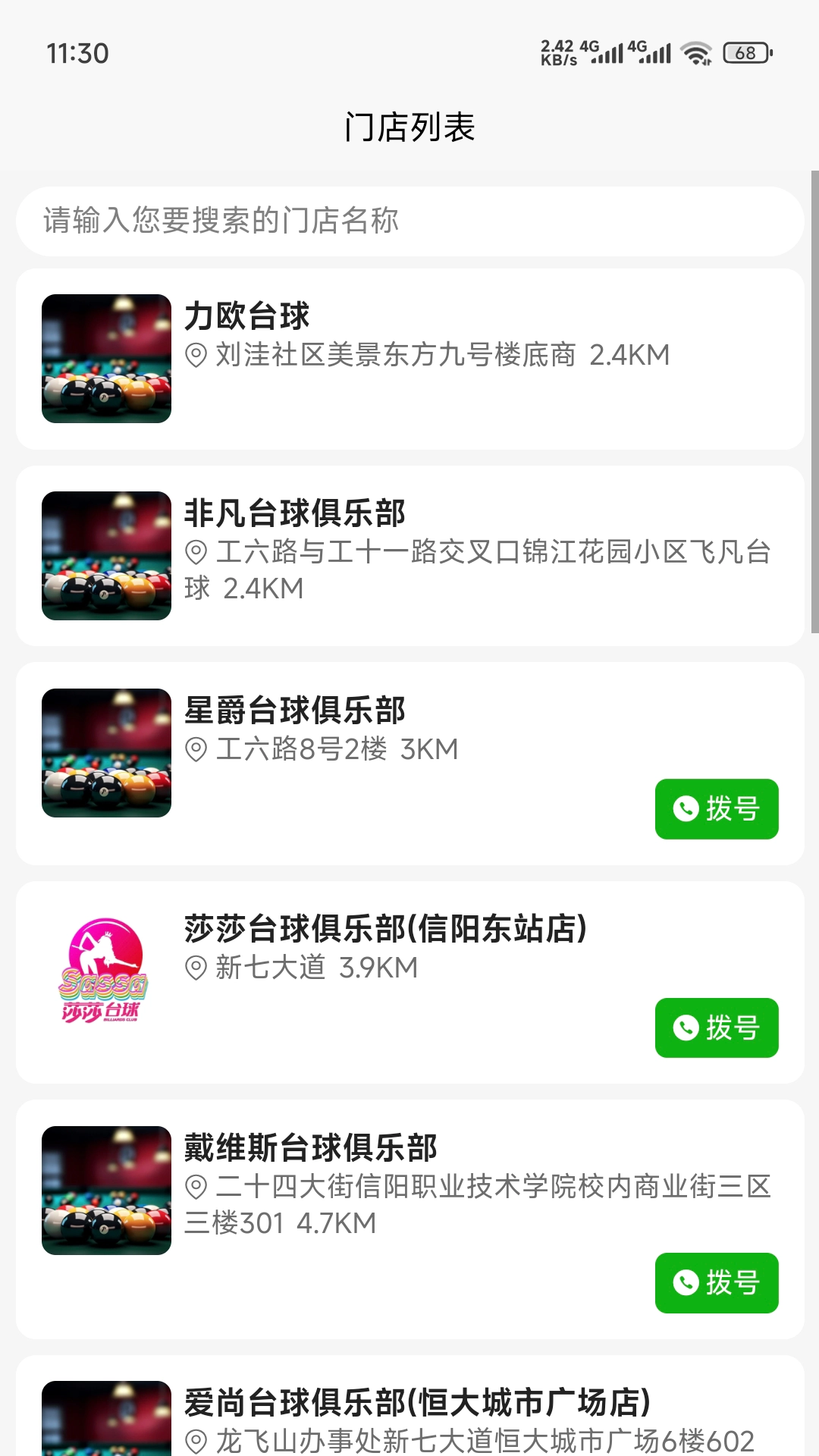 2、快速寻店:能快速定位并找到您附近评分高的台球厅,还可以一键导航以及拨打门店电话。