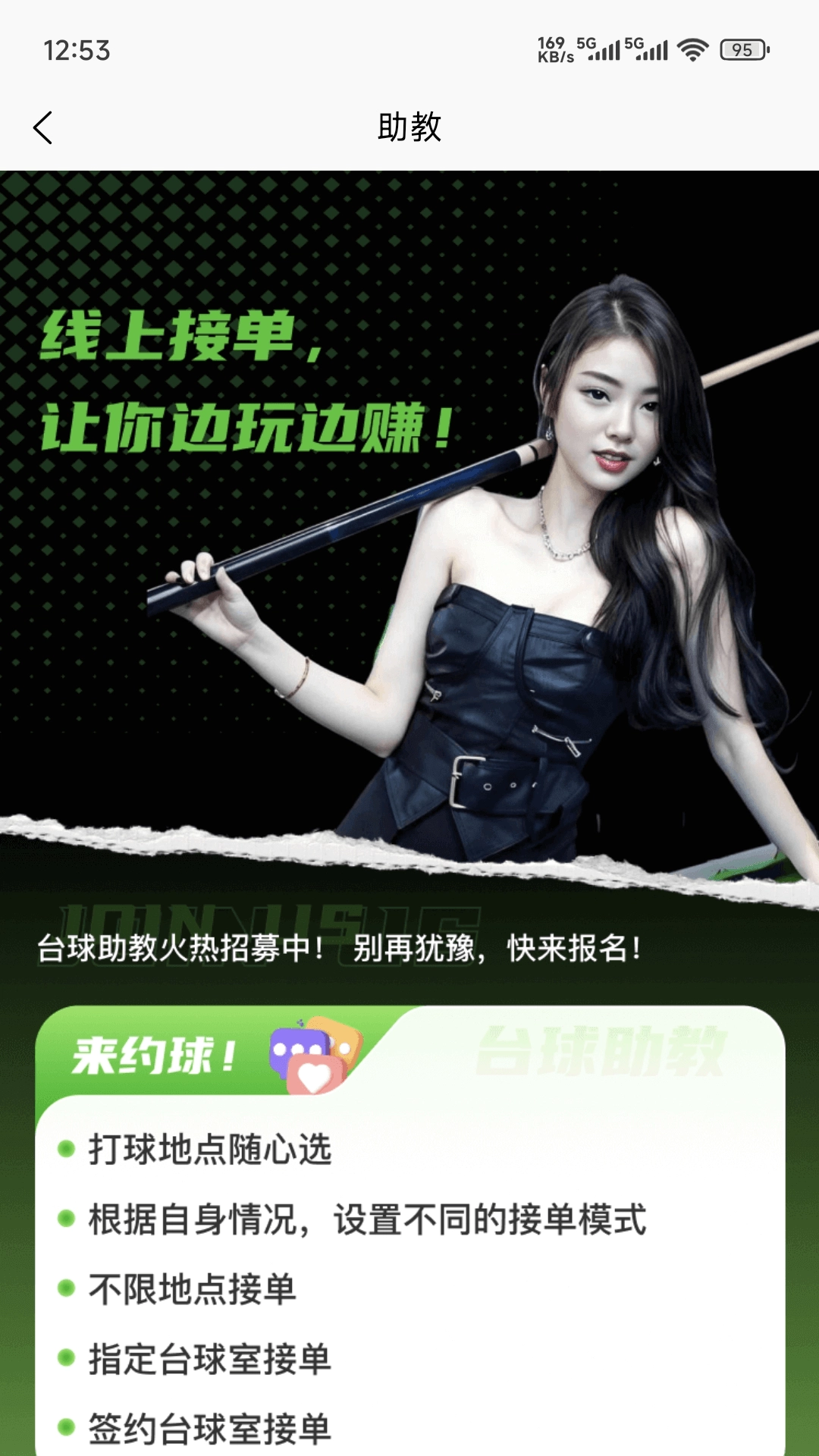 这款应用能帮助用户快速查找附近的台球门店,提供详细的位置、营业时间及台球桌配置信息,方便用户了解各球厅情况。用户可直接预约心仪的台球门店,还能在线预订台球陪练服务,轻松享受专业指导和便捷的台球体验。