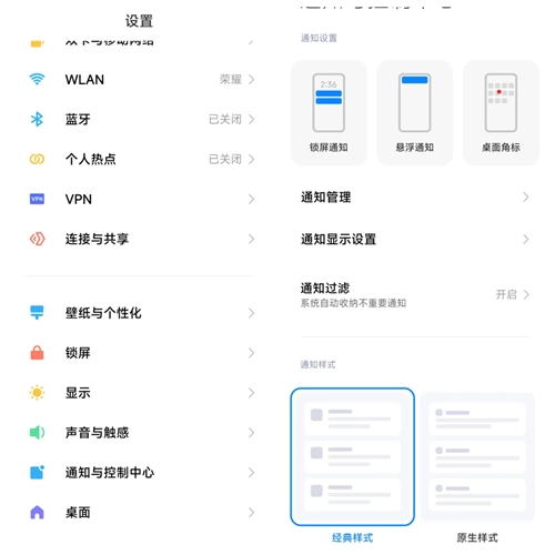 1.进入【通知与控制中心】-【通知显示设置】,将其切换为原生样式,这样能让后续操作更便捷。