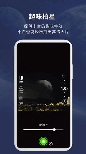 那有没有可能自己拍出来的照片不太理想呢?要是对自己拍摄的星空照片不满意,你可以点击拍摄界面左边的【特效】按钮,添加合适的滤镜特效来调整。所以操作起来还是挺方便的。