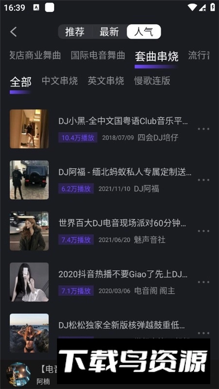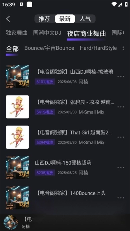 平台汇聚了全国范围内众多知名DJ与音乐人,他们持续入驻并发布原创作品,共同构成了丰富的音乐人资源。