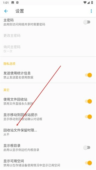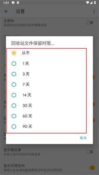3、找到回收站文件的保留时限选项,点击后弹出选择菜单。