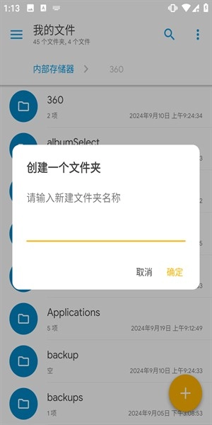3、点击右下角的加号按钮,通过这个入口可以选择新建文件夹、新建文件、云连接等多种操作选项。
