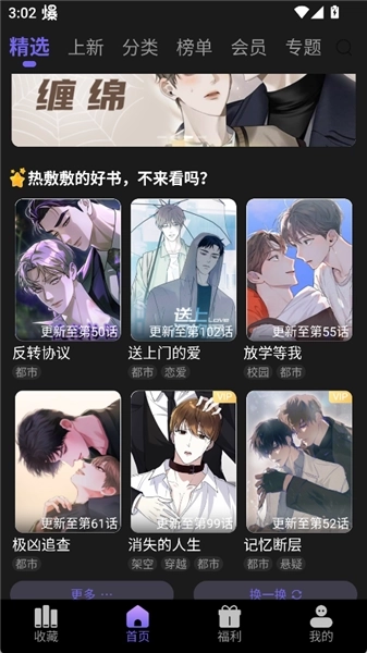 1、进入首页界面,你能浏览平台推荐的各类热门漫画,随时点击就能开始阅读;