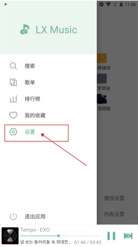 10、在设置界面中,你可以进行主题设置、音乐来源设置,还能对列表的播放模式进行调整,选择随机播放或者顺序播放。