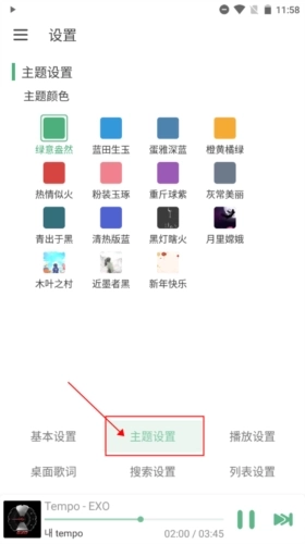 还可以自定义软件界面主题,设置音乐来源;