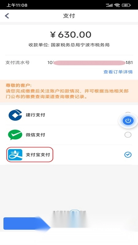 3. 核实确认缴费相关信息后,可通过选择【第三方支付】或者【协议支付】的方式来完成费用的缴纳。
