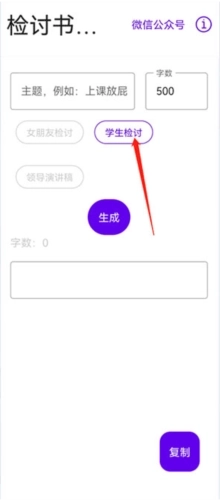 3、点击生存检讨书的主题,比如上课东张西望,选定字数后,点击生成按钮。