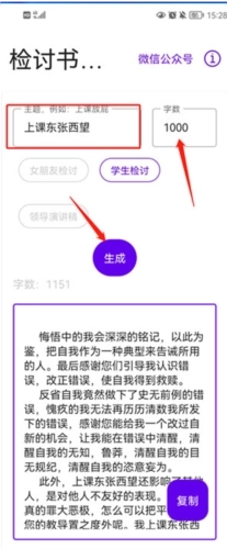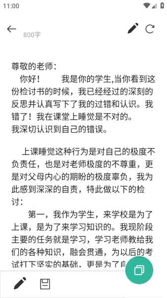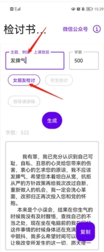 可以在手机上很便捷地生成检讨书,还能直接查看生成好的内容,同时支持保存和导出功能。