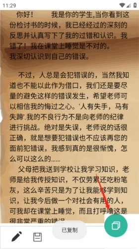 1、进入检讨书生成页面后,点击页面下方的文件图标,就能把这份文本保存到相册,之后就可以打印出来了。