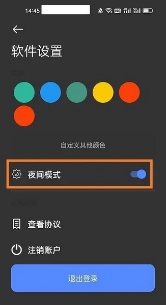 3.页面切换以后点击打开【夜间模式】的开关即可。