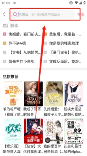 2、点击顶部的检索栏,就能搜索各类关键字,包括小说名称、作者名称或者其别称。