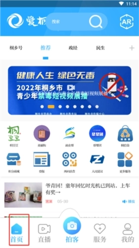 1、打开在本站下载的软件,点击进入首页后,用户可以看到海量最新资讯,涵盖桐乡好、推荐、政经、民生等多个板块;