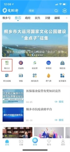 1、打开爱桐乡应用,找到首页的“桐豆豆”栏目并点击,进入该功能模块;