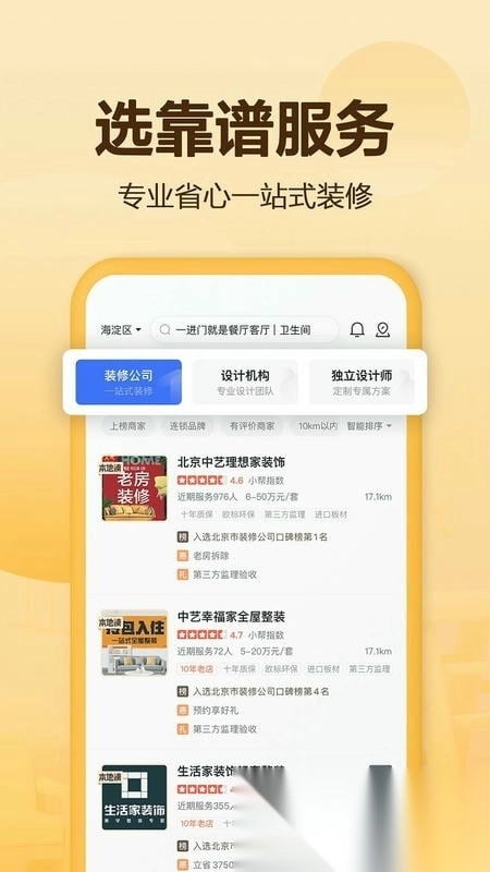 2、有装修计划的用户可借助平台筛选并联系心仪的装修公司。