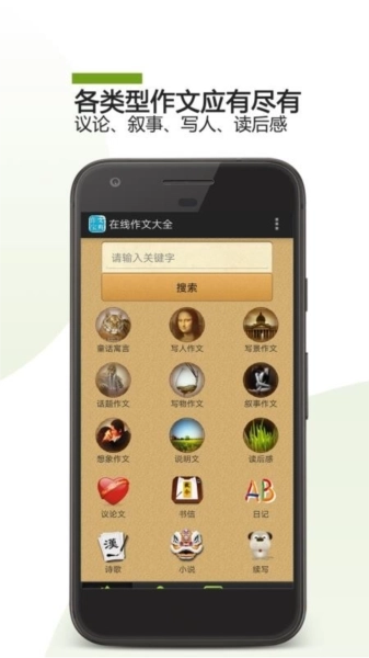 最好用的作文搜索功能,掌中搜索一键直达,分类筛选操作简单。