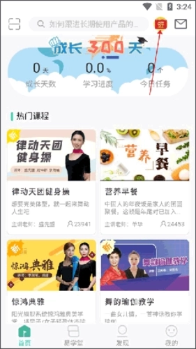 3、首页为用户呈现了不少热门课程,用户还能直接查看自己的学习天数、学习进度以及今日任务。