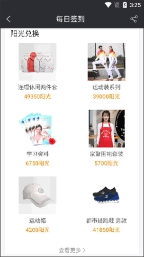 在前面的教程里我们提到过阳光这个道具,它不仅可以用来补签日期,还能兑换现实中的物品,就连很有名的品牌运动装也能兑换,前提是自己的阳光数量足够。