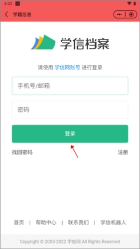 3、先输入你的手机号码与登录密码,接着点击登录按钮,之后页面便会自动刷新并显示出你的学籍信息内容。