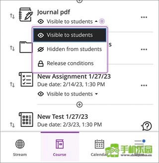 若用户希望进一步调整期刊的可见性或发布条件,也可以通过课程内容板块来进行相关操作。